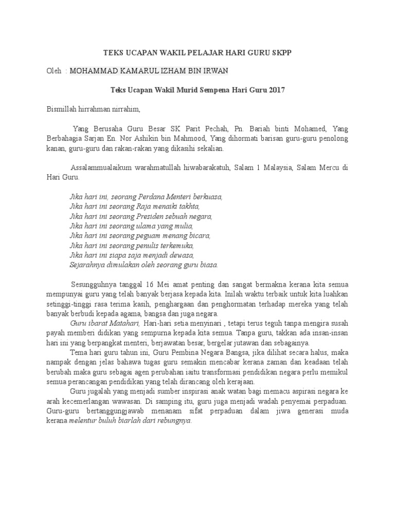 Teks Ucapan Wakil Pelajar Docx Teks Ucapan Wakil Pelajar Sempena Sambutan Hari Guru Assalamualaikum Dan Salam Sejahtera Terima Kasih Kepada Saudari Course Hero